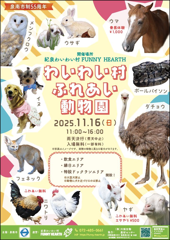 さて、11月の紀泉わいわい村は、大人も子供も笑顔になる「わいわい村ふれあい動物園」を開催します!